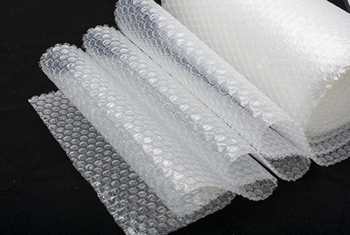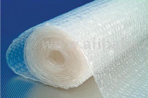 气泡膜,是以高压聚乙烯为主要原料,再添加增白剂、开口剂等辅料,经230度左右高温挤出吸塑成气泡的产品。是一种质地轻、透明性好、无毒、无味的新型塑料包装材料,可对产品起防湿、缓冲、保温等作用。也叫气泡垫。由于气垫膜中间层充满空气,所以体轻、透明、富有弹性,具有隔音、防震、防磨损的性能,广泛用于电子、仪表、陶瓷、工艺品、家用电器、自车行,厨房、家具和漆品制品、玻璃制品及仪器等抗震性缓冲包装。可制成气泡袋、气泡牛皮纸信封袋、汽车太阳挡、隔热座垫、隔热保温材料等。通过在塑料原料中加入不同的添加剂更可以制造防静电等各种专用气垫膜。防静电气垫膜用于包装电子元件、组件,如板、卡等,能防止静电又能起到缓冲防振的作用。